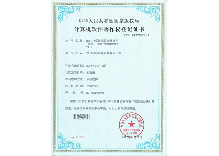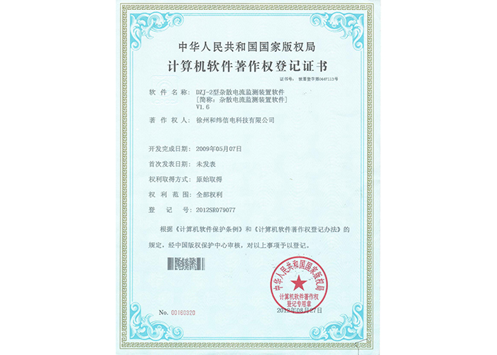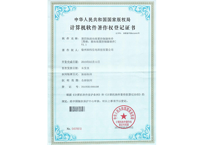 • 10軟件產品登記證書——和緯信電HSCC-2型排流控制器軟件V1.2